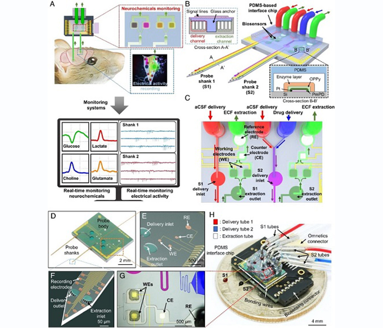 鉴于此,研究团队开发出一款芯片,其可插入大脑特定区域,能同时测量神经递质和神经信号。这款大脑芯片,包含一个便于提取脑脊液的流体管,该流体管会被引导至集成传感器阵列,以实时观察流体中存在的各种神经递质。