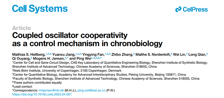 该研究由中国科学院深圳先进技术研究院合成生物学研究所魏平团队与丹麦皇家科学院院长、哥本哈根大学玻尔研究所的Mogens H. Jensen团队合作完成。深圳先进院为论文第一通讯单位。