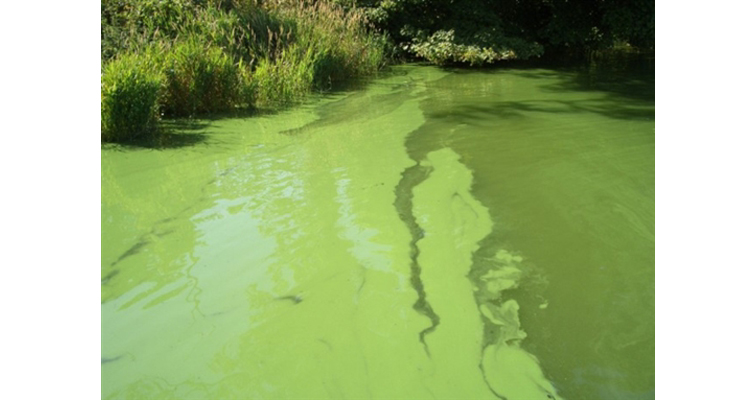 营养物污染会导致有害藻华的生长,如蓝绿藻(如图)。图片来源:英国生态与水文中心