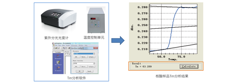 UV Tm分析系统组成(左)和核酸样品Tm分析结果(右)