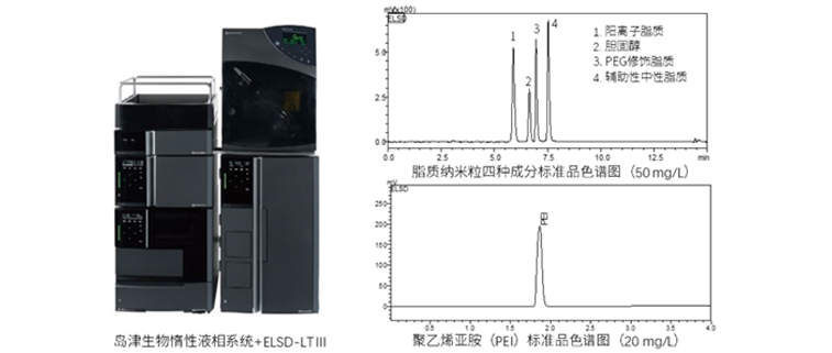 利用岛津生物惰性液相系统结合蒸发光散射检测器ELSD-LT III建立了定量分析LNP中四种成分含量,以及PEI含量的分析方法。