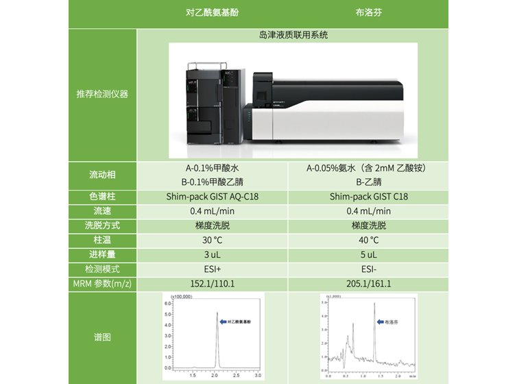 体内药物浓度检测方法主要有免疫法、化学发光法、液相色谱法及串联质谱法,串联质谱法被誉为小分子检测领域的“金标准”,具有特异性强、灵敏度高、准确性高、分析时间短、高通量等优点,已成为血药浓度的检测首选方法。采用串联质谱检测体内对乙酰氨基酚及布洛芬的药物水平具有通量高及精准特异等优点,受到广大临床工作者的青睐。