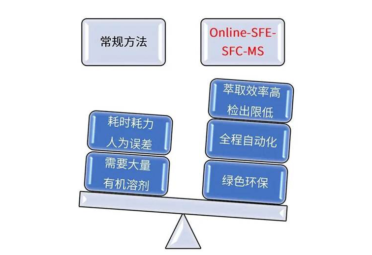 l Online SFE-SFC-MS 系统简化了血液样品的前处理过程,实现了样品提取检测的全程自动化,减轻了人力成本。