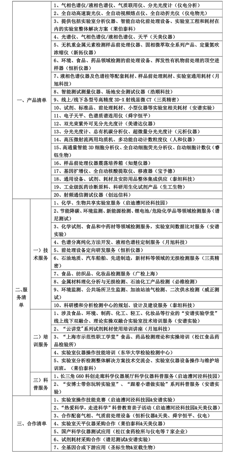 松江区分析技术产业集群产品清单、