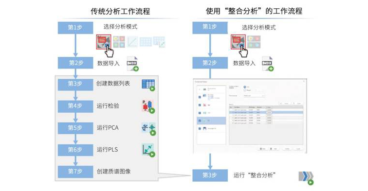 在“整合分析”模式下通过预设参数可自动获取具有显著特征的质谱图像。这一功能非常便于用户以同样方式处理大量数据。用户只需执行一步操作即可创建基于差异分析和/或图像分析的数据列表、进行数据统计分析以及获取质谱图像。