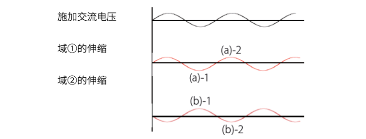 图4. 外加电压下压电材料的伸缩与相位信号的关系