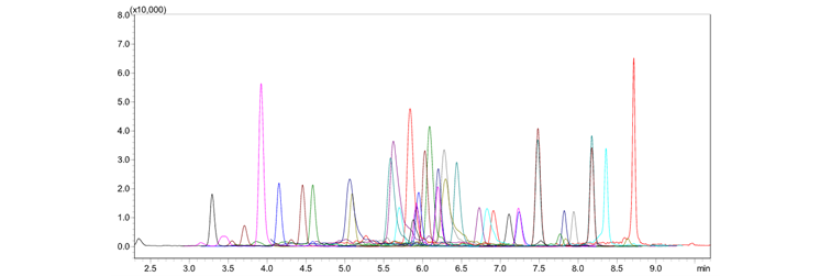 甘蓝中331种农药及其代谢物MRM色谱图(GB 23200.121应用实例)