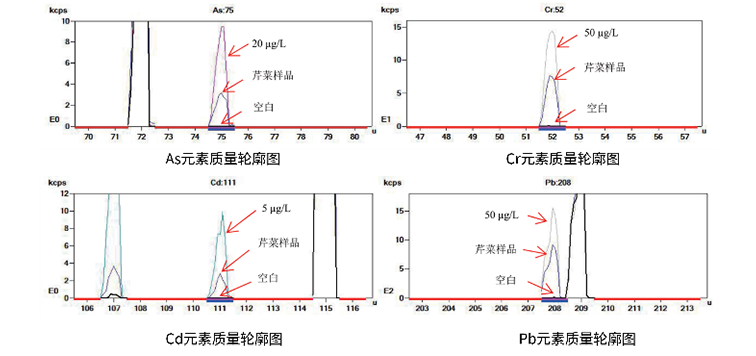 ICPMS-2030测定蔬菜中多元素含量-部分元素质量轮廓图及标准曲线