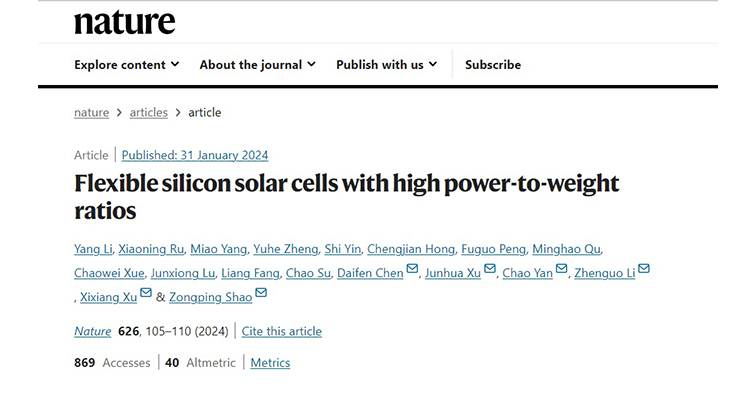 近日,隆基绿能与江苏科技大学、澳大利亚科廷大学三方合作,在国际上首次制备出高柔韧性、高功率重量比的晶硅异质结太阳能电池。相关研究成果发表在《自然》。