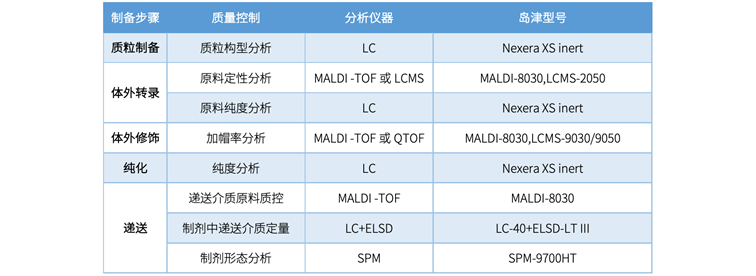 根据mRNA疫苗制备流程,岛津结合自身仪器建立了mRNA疫苗质量控制解决方案。