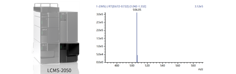 mRNA制备过程中非常重要的一步是将DNA转录为RNA,其中需要用到的原料有三磷酸核苷(NTPs)。岛津通过单四极杆质谱(LCMS-2050)确定不同NTPs分子量,从而对原料进行定性分析。LCMS-2050标配DUIS(ESI+APCI)离子源,质量范围广,兼顾了小型化及高性能。