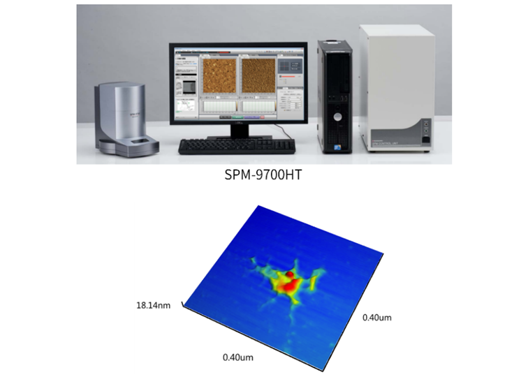 扫描探针显微镜SPM-9700HT实物图(上)和mRNA表面形貌图(下)