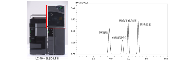 ELSD-LT III检测器实物图(左)和LNP色谱图(右)