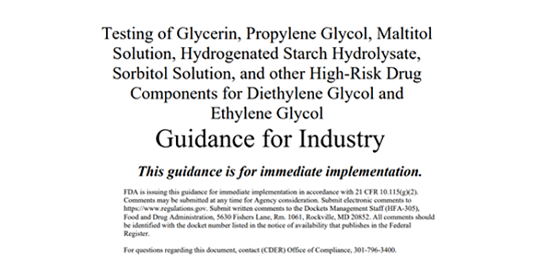 FDA发布针对二甘醇和乙二醇的严格检测指南