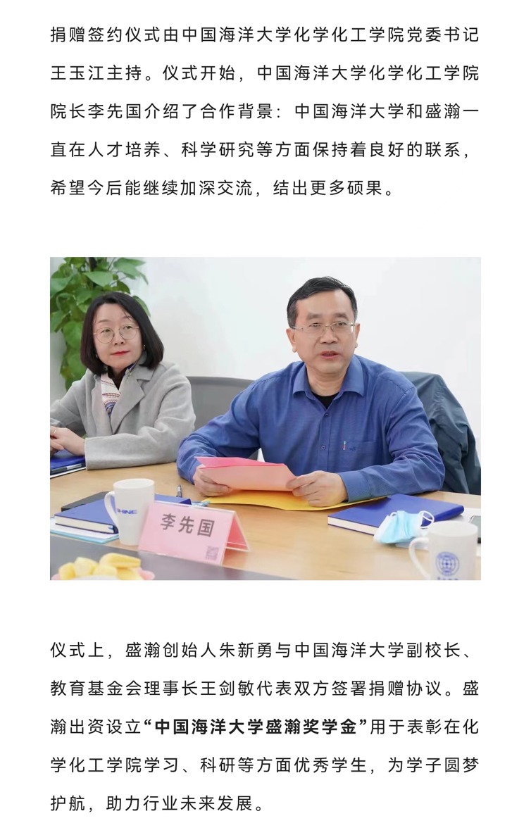 盛瀚与中国海洋大学捐赠签约仪式成功举行!