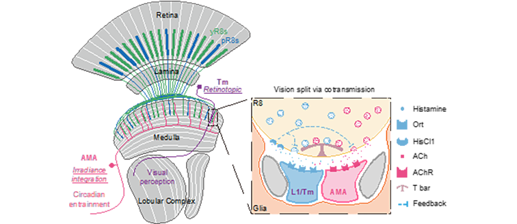 研究者揭示“一细胞,两递质,两视觉功能”的神经机制