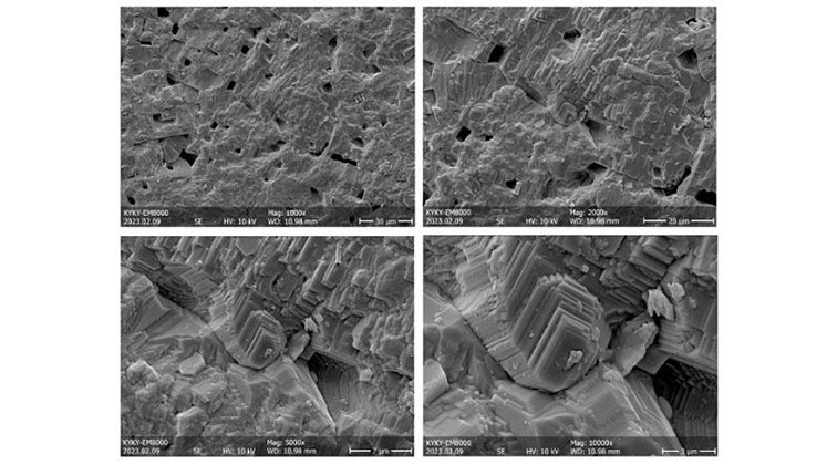 陶瓷固体的样品制备相对简洁,但需要注意的是,样品的待观察表面需要要要较为平整,且在观察时如果没有特殊需求,样品表面需要尽量保持水平,从而避免由于表面高度差过大导致景深不足。