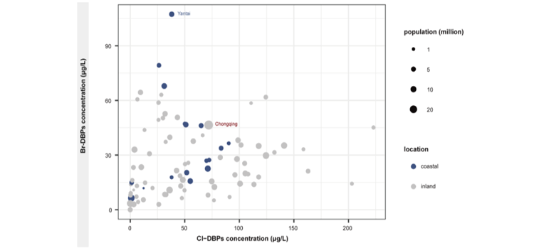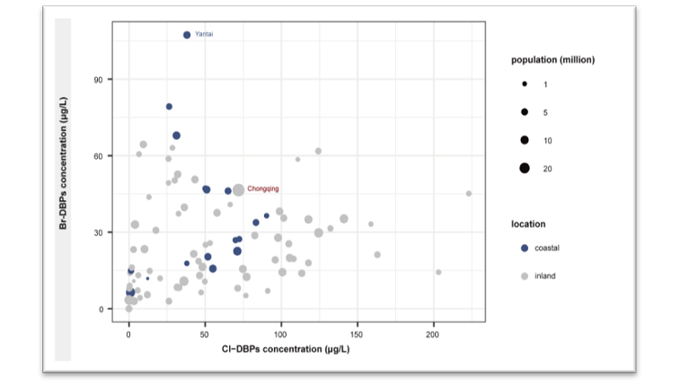 图1:沿海和内陆城市的Br-DBPs和Cl-DBPs(Supplementary information)