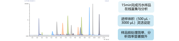 岛津AOE系统,作为在线固相萃取技术的代表,具备24h不间断样品制备能力-样品制备后可立即检测,减少因样品等待仪器分析时间过长造成的主成分损失,大大降低了实验室人力运行成本,真正实现了污水中毒品的“快、准、稳”的分析检测。