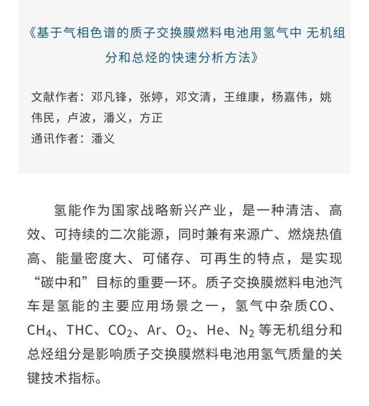 文献解读 | 质子交换膜燃料电池用氢气中无机组分和总烃的快速分析