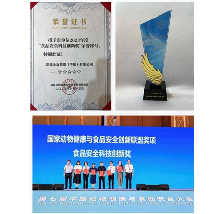 之后进入国家动物健康与食品安全创新联盟年度奖项颁发仪式环节,通过联盟理事会的推选和评选,本次大会选出2023年联盟杰出贡献奖7名、动物健康科技创新奖7名及食品安全科技创新奖6名。岛津有幸荣获本届大会的“食品安全科技创新奖”荣誉称号。张涌院士、谯仕彦院士共同为食品安全科技创新奖获奖企业颁发奖牌。