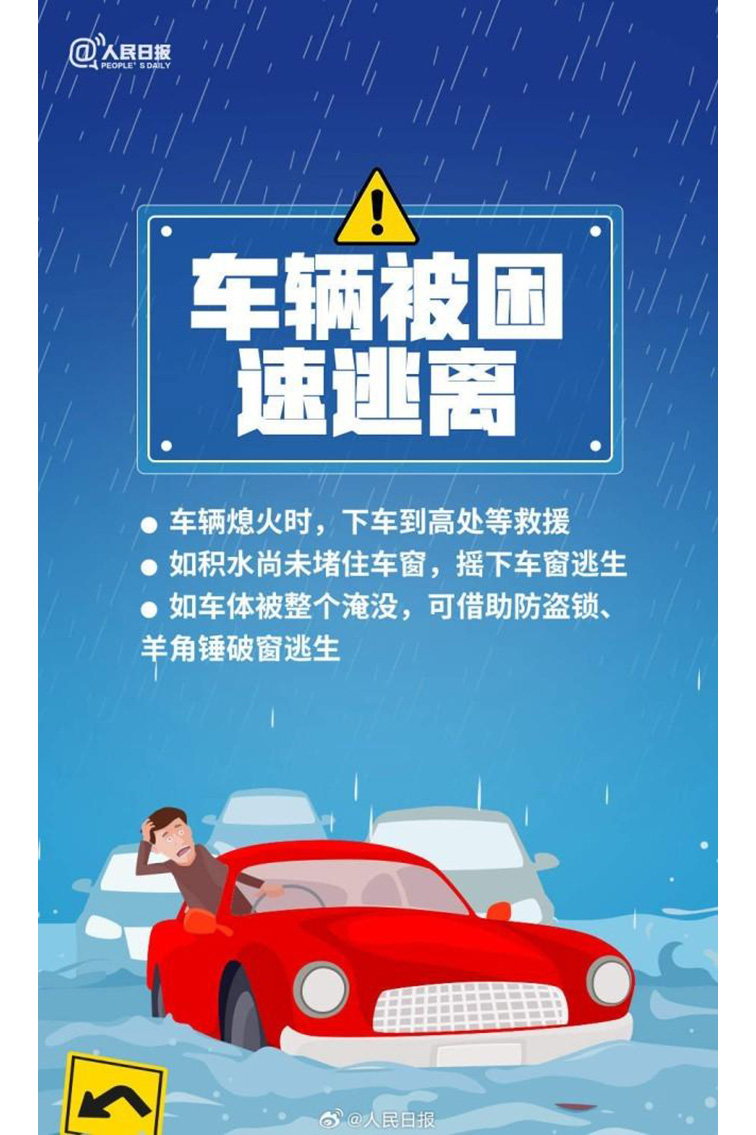 遇到暴雨该怎么办?居家防范有什么要注意?车辆被困如何逃生?怎样防范次生灾害?实用防御指南↓↓扩散周知!