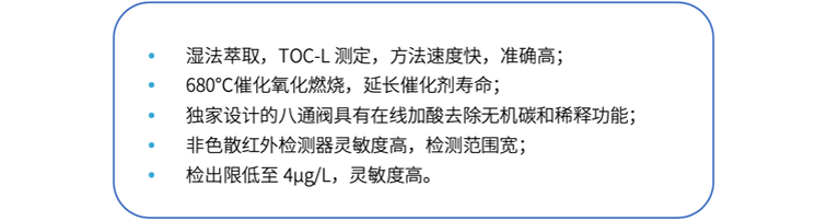 TOC-L可以轻松检测植入物表面微量的各种有机物残留,检出限低至4μg/L,完全满足T/CSBME 003-2018《外科植入物骨科植入物的清洁度要求通用要求》标准中TOC限值0.5 mg/件的检测限量要求。