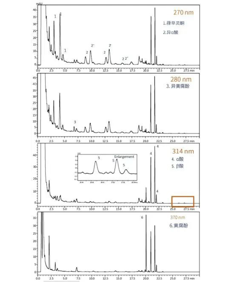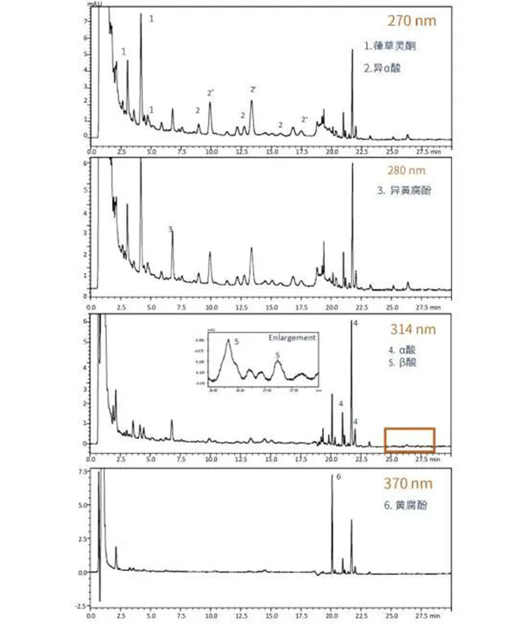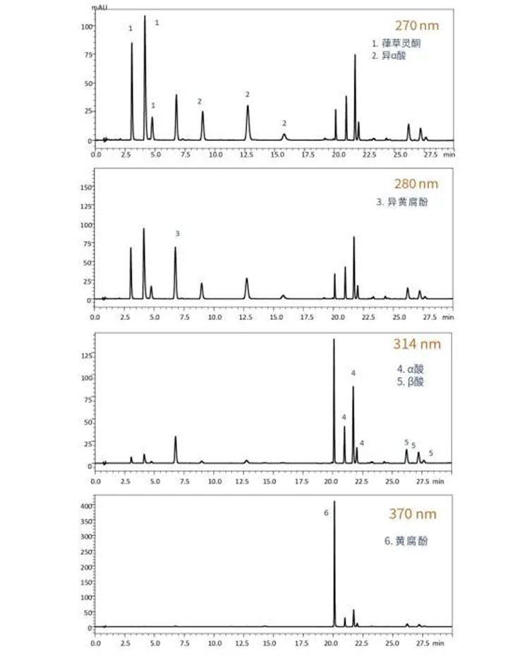 我们将介绍一种基于HPLC同时检测啤酒中的黄腐酚、异黄腐酚、葎草灵酮、异α酸、α酸和β酸6种风味成分含量的方法,为探索啤酒的独特风味提供帮助。