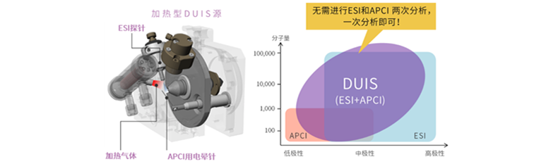 l 全新的复合双离子源 (DUIS)适用范围更广泛,对各种化学性质的化合物(包括低极性化合物)均实现了出色的灵敏度;
