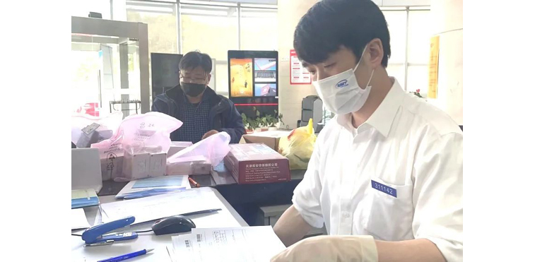 制定窗口疫情防控专项方案。及时发布各受理窗口营业公告,便于客户办理业务。各窗口实行全封闭管理,窗口工作人员和客户只能在大厅封闭区域内活动。客户按要求佩戴口罩,签署疫情防控承诺书。分散大厅的等候区和休息座椅,减少大厅人员聚集。配置口罩、消毒洗手液、酒精湿巾等方便取用。窗口工作人员按要求佩戴口罩和硅胶手套,对送检样品进行表面消杀后方可进行受理工作。