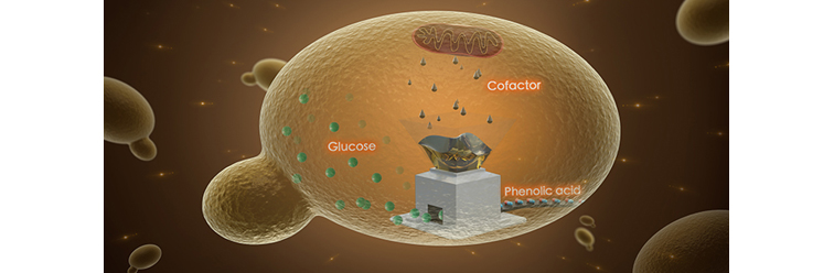 近日,中国科学院大连化学物理研究所合成微生物学研究组(1823组)周雍进研究员团队与海军军医大学药学系张磊教授合作,在酚酸类天然产物合成生物学研究方面取得新进展。合作团队在酿酒酵母中构建与优化了酚酸生物合成途径,强化了关键辅因子的供给和周转,实现了酚酸化合物的高效合成。