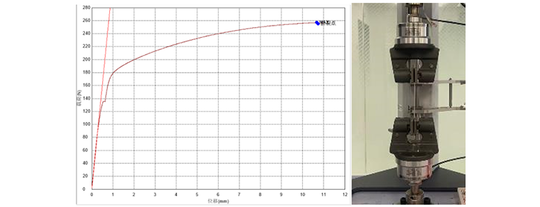 使用岛津AGS-X电子试验机配合岛津气动双推夹具,能够完成镁合金中空管的拉伸测试,测得镁合金中空管的抗拉强度和断裂点载荷,并保证断裂位置始终在管材的中间位置,此应用可适用于穿刺针类样品的拉伸测试,通过简单数据与曲线对照,就可以直观判定镁合金的抗拉性能是否达到要求。
