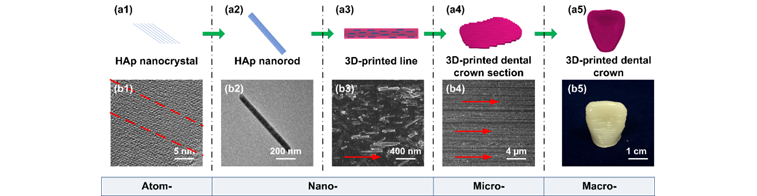 图2. 基于高度有序HAp基复合树脂牙冠的3D打印流程示意图