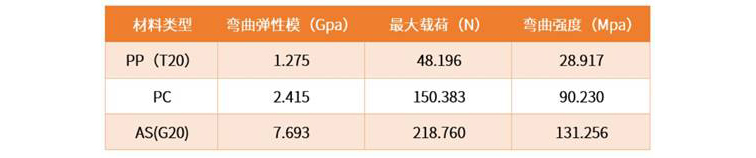 从拉伸/弯曲试验结果可以看出:在拉伸/弯曲强度,弯曲弹性模量等力学性能指标中,AS(G20)>PC>PP(T20)。