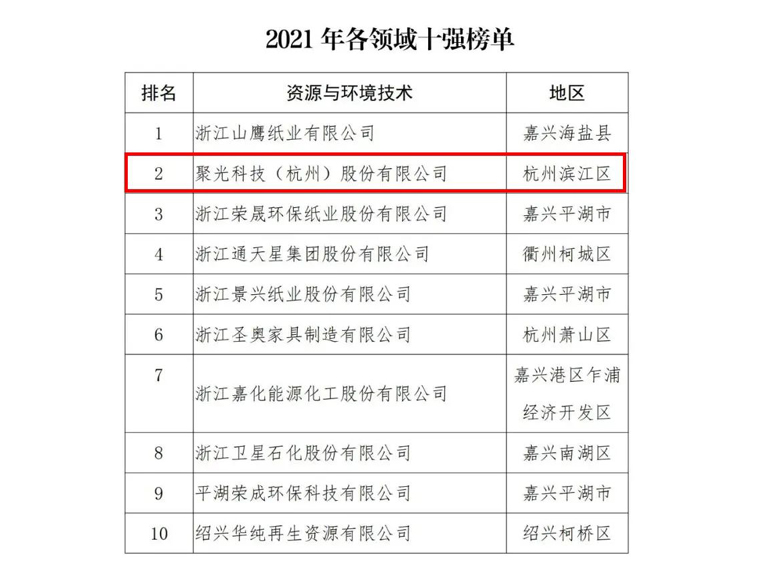 2021年12月,浙江省高新技术企业创新能力百强榜单出炉,聚光科技(杭州)股份有限公司(简称“聚光科技”)入选百强榜单、资源与环境技术领域十强榜单。