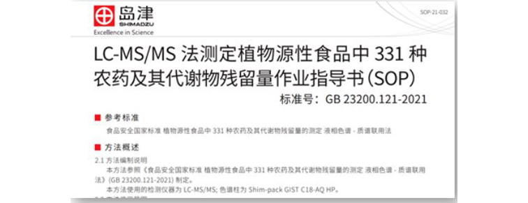 岛津针对GB 23200.121-2021,已经贴心地为用户整理出SOP,供用户参考。