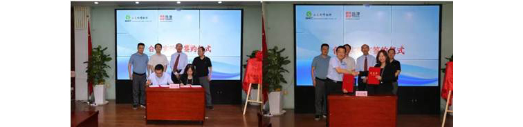 致辞结束,山东省环科院环境检测有限公司总经理曹大勇与岛津分析计测事业部营业部华北大区经理魏雅馨共同为合作实验室进行了签约。