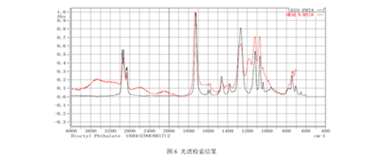 对2#嫌疑车辆样本光谱图进行检索,得到其成分结果为邻苯二甲酸二辛酯(DIO_PHTA)。