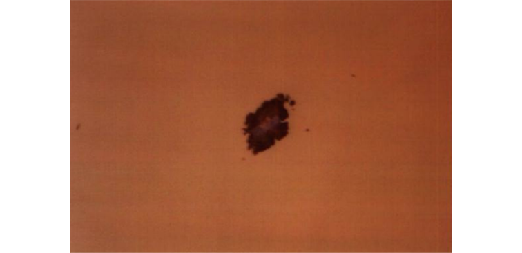 图7:木材上的油漆碎片,用金刚石压平,尺寸:约 70x30μm