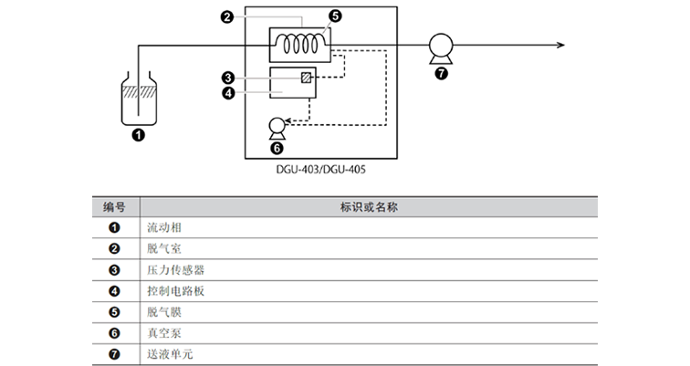 l 在使用缓冲液的状态下,缓冲液长期封入脱气膜内,在配管内部析出的盐可能会造成流路堵塞,必须将缓冲液更换为纯水或纯有机溶剂。