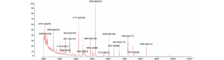 使用岛津MALDI-TOF iDPlus Assurance、Confidence、Performance等多款仪器,采集待测微生物的核糖体蛋白质谱图,与数据库中的标准谱图进行匹配检索,可以快速的进行致病菌鉴定。数据库中含有3400种以上微生物的标准图谱,涵盖大部分常见细菌及真菌。同时还支持用户自行追加新的标准谱图,以满足数据库中未收录菌种的鉴定需要。