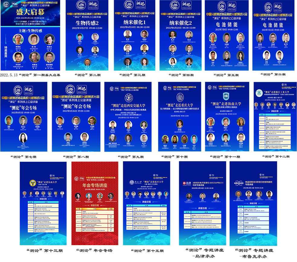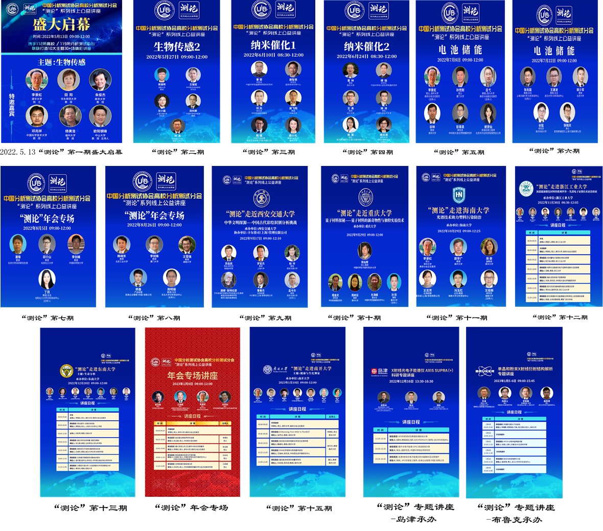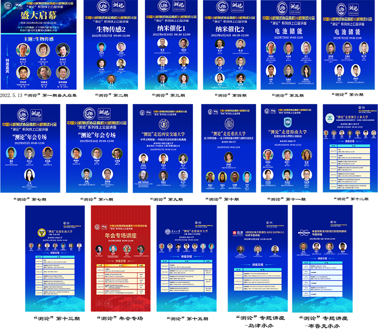 自2022年5月开始,高校分会主办“测论”论坛,通过主题融合的方式,打造不同主题月,多学术领域全面启动,分别开展了生物传感、纳米催化、电池储能、智能材料、光电信息材料、人工智能与机器学习、量子信息材料和表界面功能材料等主题。与高校特色发展紧密结合,特别是和高校区域化的科研发展相结合,分享前沿科学研究成果。同时与仪器公司合作开设技术专题讲座,不仅有助于企业发展与高校发展紧密结合,同时通过与企业结合的方式助力测试技术的提升。通过“测论”直播平台与多家媒体直播平台(蔻享学术、科研云、邃瞳科学云、邃瞳直播平台、邃瞳B站、邃瞳视频号)融合,目前,论坛共举办了15期学术讲座、2期技术专题讲座以及4个专题培训。相继邀请了张玉奎院士、江桂斌院士、李景虹院士、刘买利院士、孙世刚院士、陈仙辉院士、樊春海院士等7位院士,及30余位国家杰青在内的80余位专家学者做了学术报告,获得了各领域的广泛关注,累计观看超过80万人次。借助直播平台免费回放优势,保证观众可以随时领略大咖风采,不错过任何瞬间。以线下参会差旅费成本1000元/人计算,“测论”论坛为国家节省了8亿余元的经费成本,同时也节约了参会者参加线下会议的时间成本。