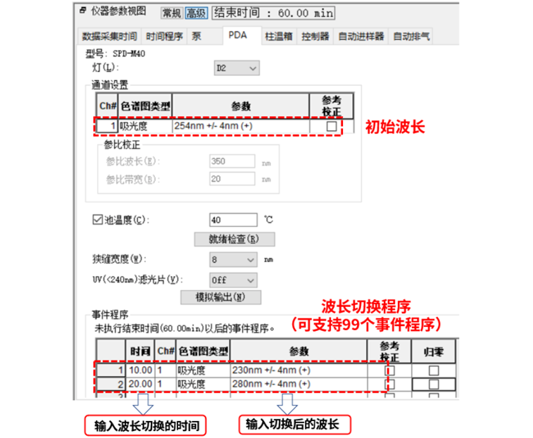 ●岛津PDA检测器波长切换功能在软件中设置即可