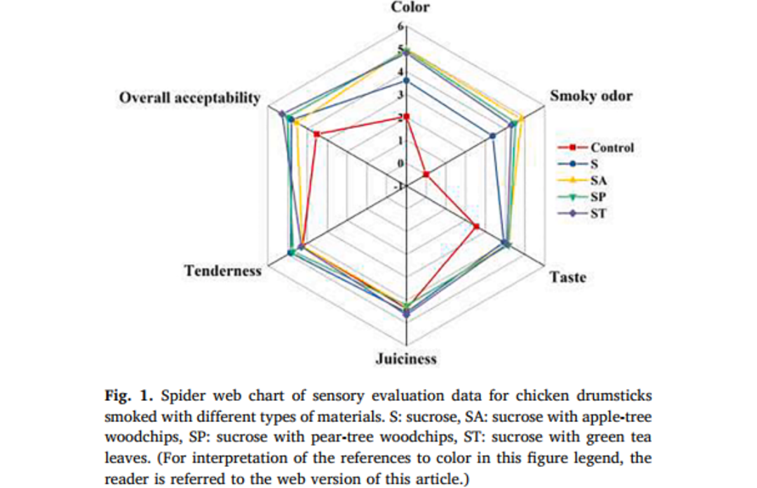 图1. 不同烟熏材料熏制鸡腿的感官评价;