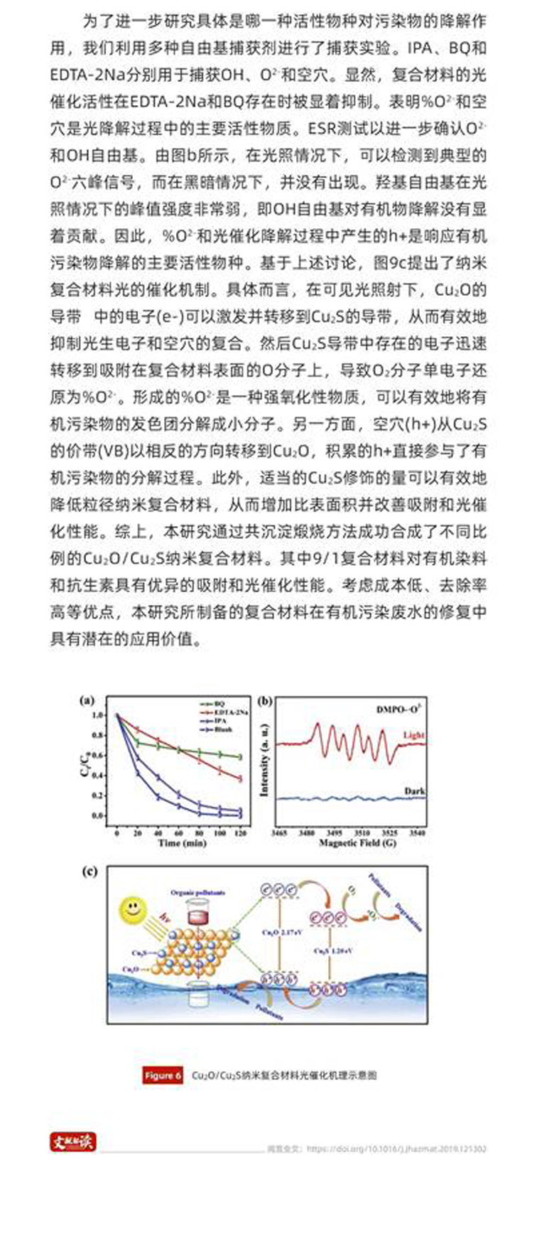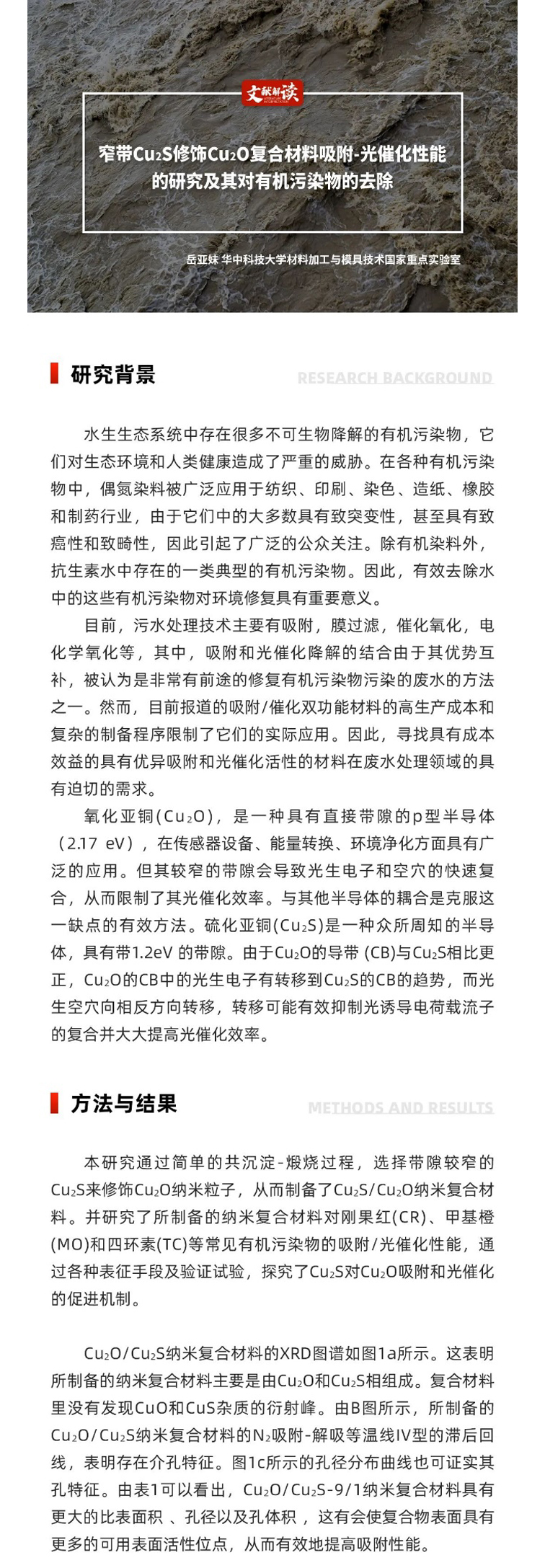 文献解读丨窄带硫化亚铜修饰氧化亚铜复合材料吸附-光催化性能的研究及其对有机污染物的去除