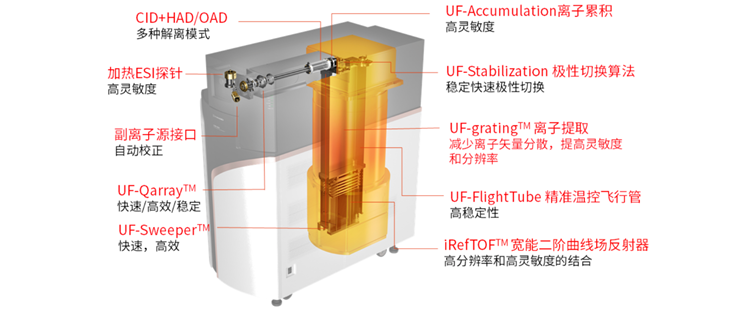 l UF-GratingTM 高场离子提取技术:有效聚焦离子,减少离子的折返时间及损失。
