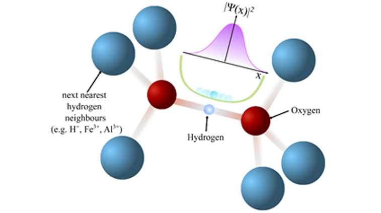 氢键在自然界中无处不在,它们通过稳定DNA分子形成生命物质的骨架,是一些新材料得以存在和发现的关键,对氢键的研究也是当代凝聚态物质研究的驱动力之一。被氢键稳定的体系通常表现出丰富的物理现象,如相变、超离子态或高温超导性等。这些现象往往发生在氢键趋于对称的时候,即当氢原子位于两个较重的原子之间的几何中心位置时(如图)。