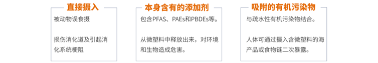 塑料碎片及微塑料通过各种途径进入环境,在海洋、高原中均被检测出,最后通过食物链被人体吸收。微塑料对人体的危害主要包括直接摄入、微塑料中本身含有的添加剂、微塑料吸附的有机污染物等。
