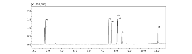 5种紫外线稳定剂(UV 320, UV 326, UV 327, UV 328, UV 531)总离子流图
