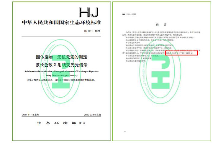 《HJ1211-2021固体废物 无机元素的测定 波长色散X射线荧光光谱法》标准,是为了贯彻《中华人民共和国环境保护法》《中华人民共和国固体废物污染环境防治法》,防治生态环境污染,改善生态环境质量,规范固体废物中无机元素的测定方法。